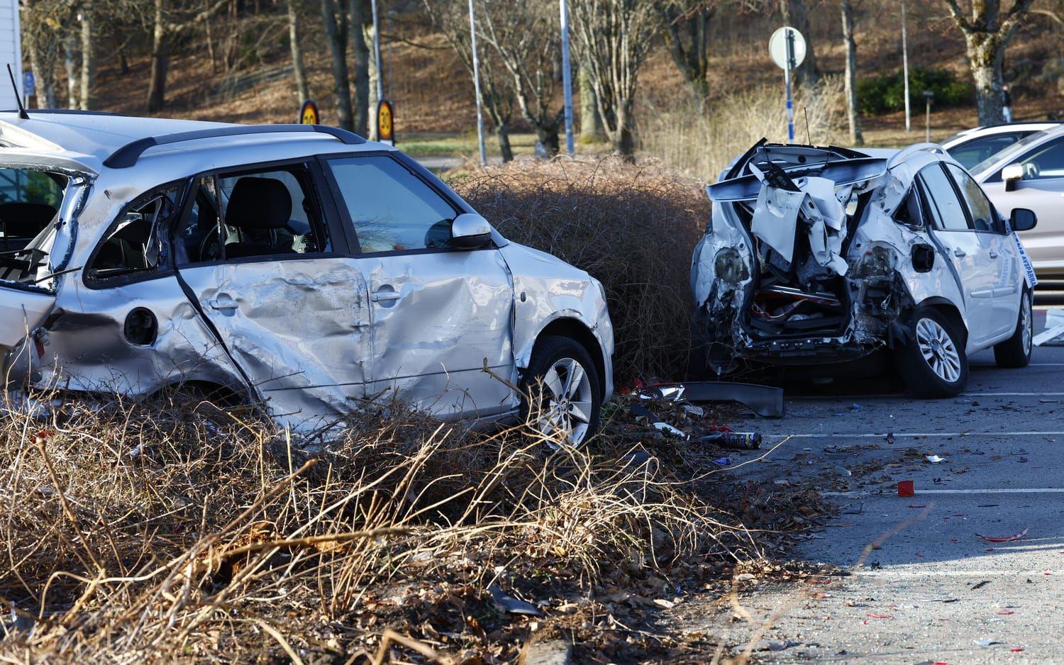 Ingen annan människa kom heller till skada, som väl var. Men den materiella skadan blev stor; minst fem bilar blev påkörda.