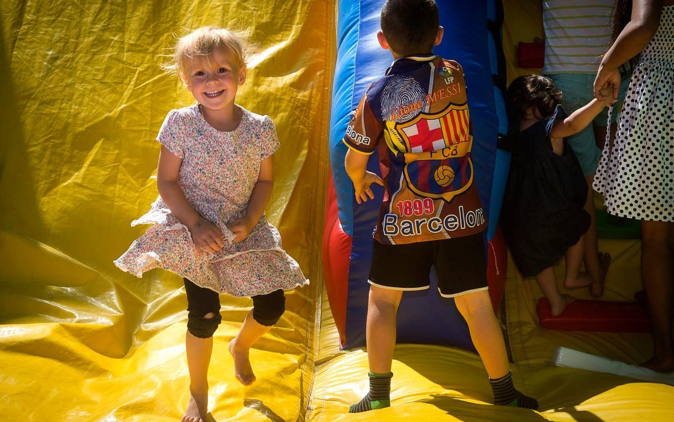 Arrangören bakom det uppblåsbara tivolit var mer än nöjd med alla barnen som strömmade till i sällskap med vuxna.