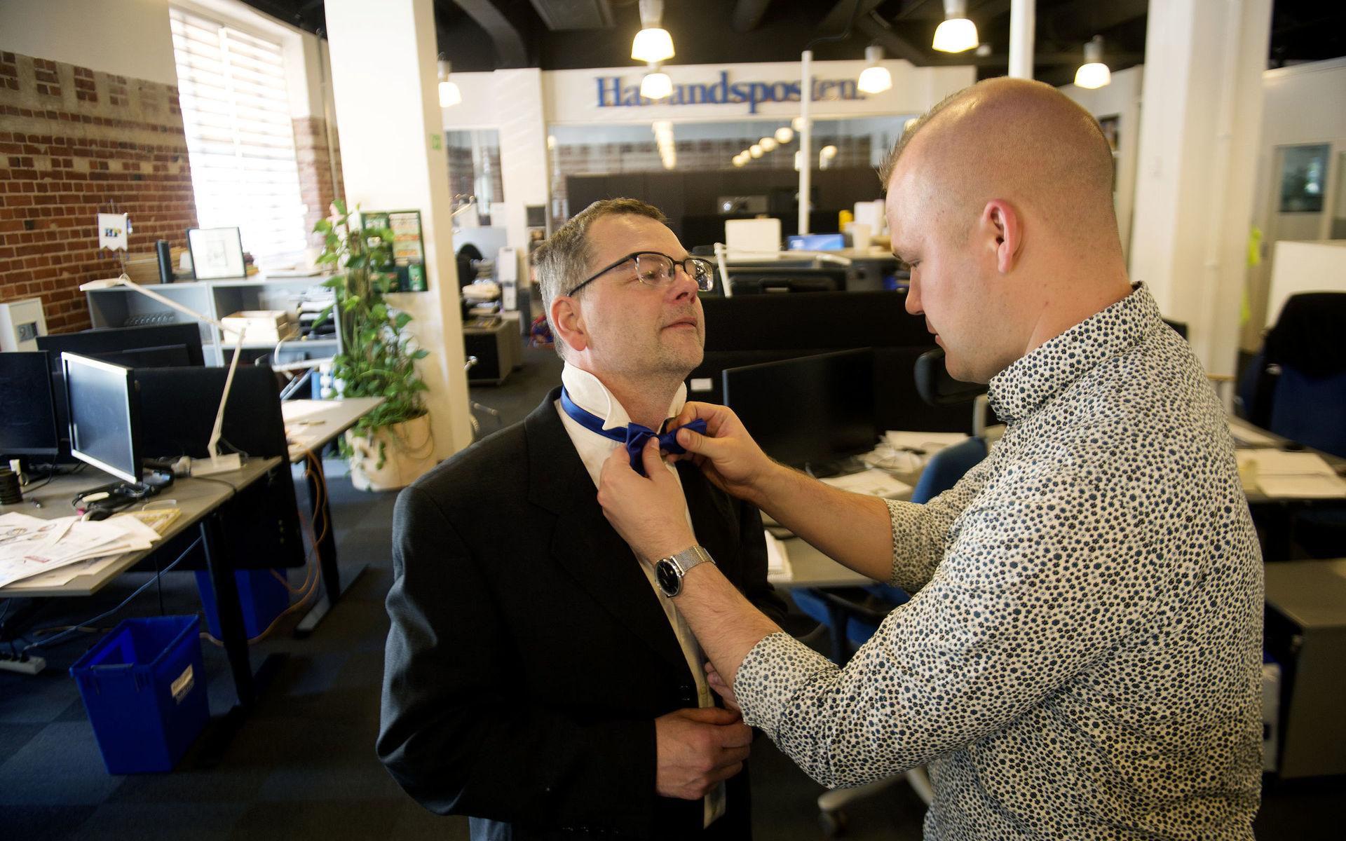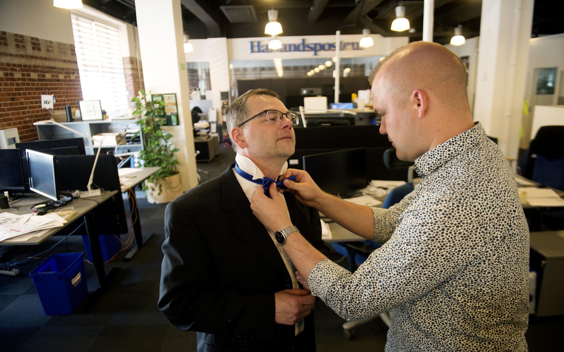En annan Halmstadstudent hävdade: ”Jag känner mig fabulous.” Jo, känslan känns igen när kavaj och fluga åker på. Lite snyggare än den där hoodien som jag brukar ha på jobbet. Man kanske borde lägga om stil nu när man fyllt 50? Eller 52 om man ska vara petig. Snart 53.