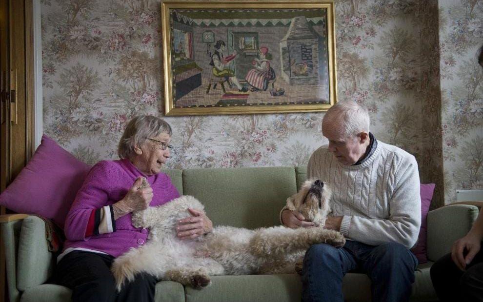 Fredag eftermiddag och råkallt ute. Men inne på äldreboendet i Eldsberga är det varmt, varmt och välkomnande. I en liten soffa har Anna-Stina Andersson och Bertil Nilsson bänkat sig för att få träffa Charlie. Ett möte de ser fram emot.
