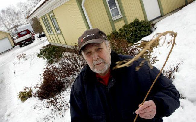 Hampaodlingen i Allarp ligger sedan flera år på is. En ensam förtorkad kvist sticker upp genom snötäcket i Hammarstens trädgård och kommer väl till hands vid fotograferingen. Men det är inte omöjligt att industrihampan en gång växer hög och grön på ägorna igen.