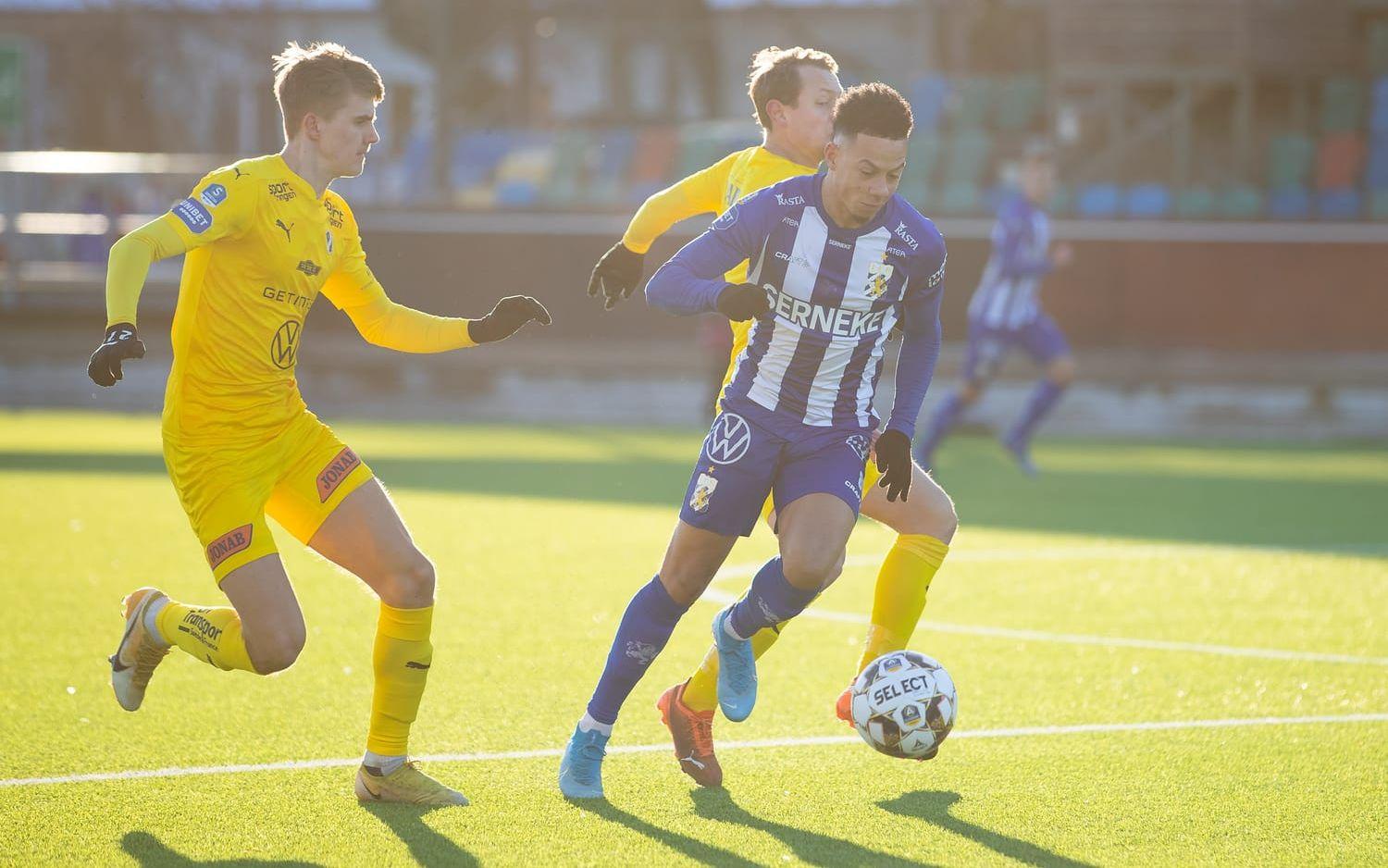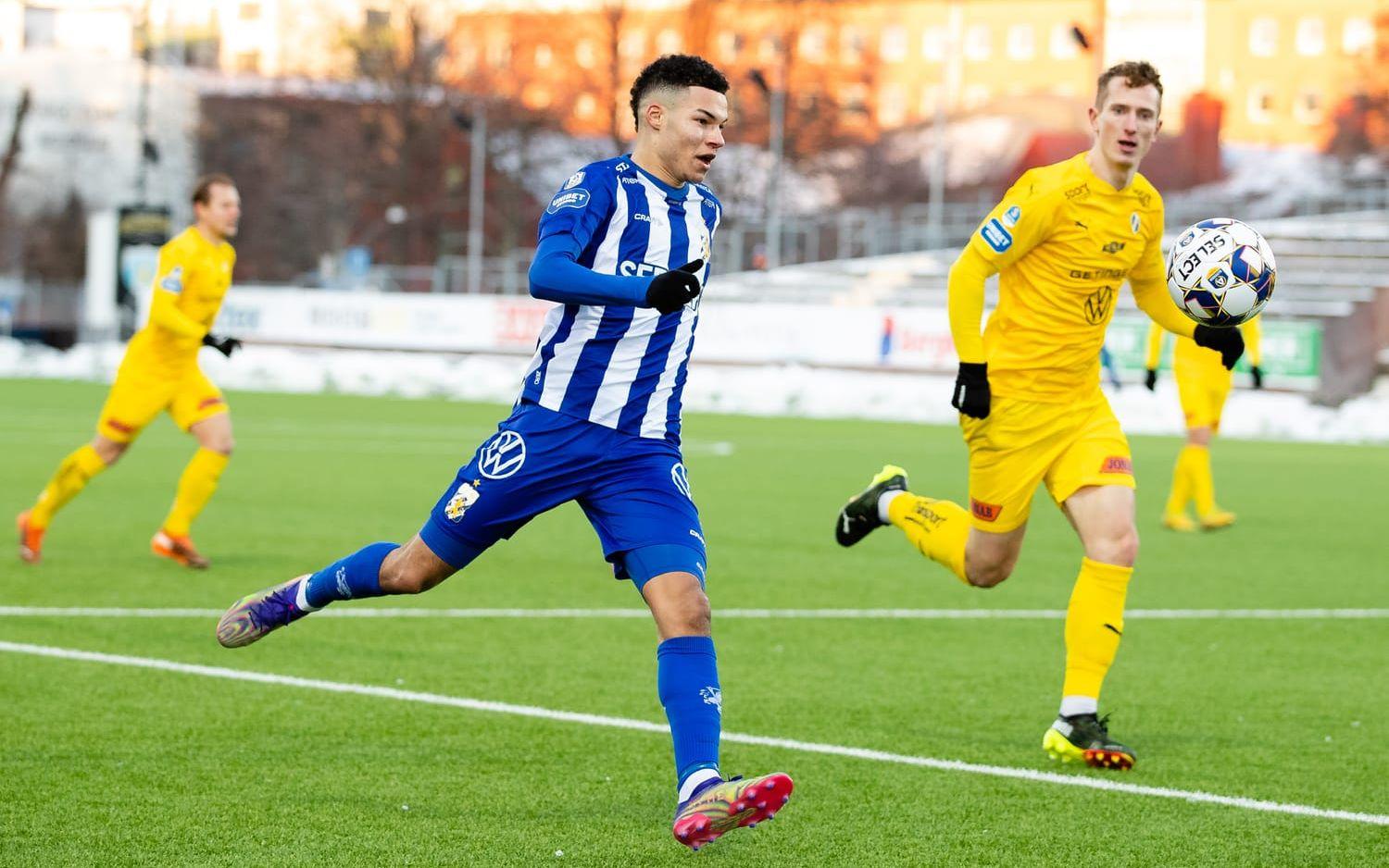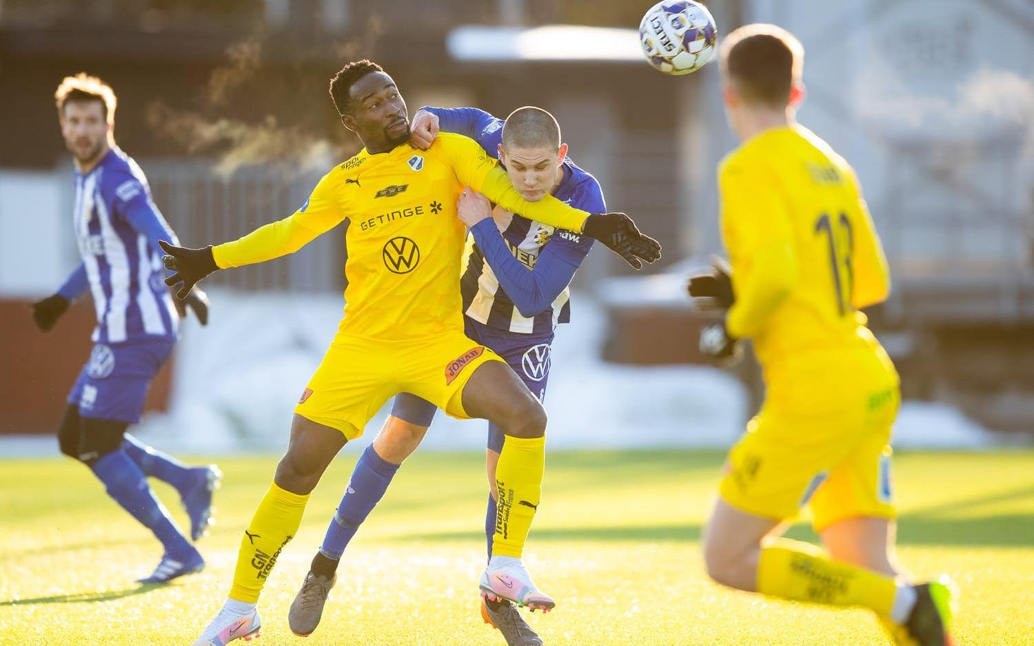 HBK, som gjort sju mål i de två första träningsmatcherna mot IFK Värnamo och Falkenbergs FF, behövde bara sju minuter på sig innan man tog ledningen.