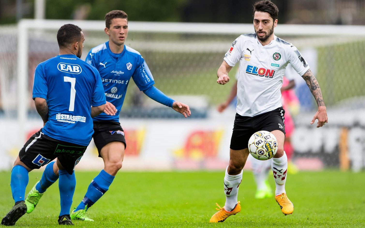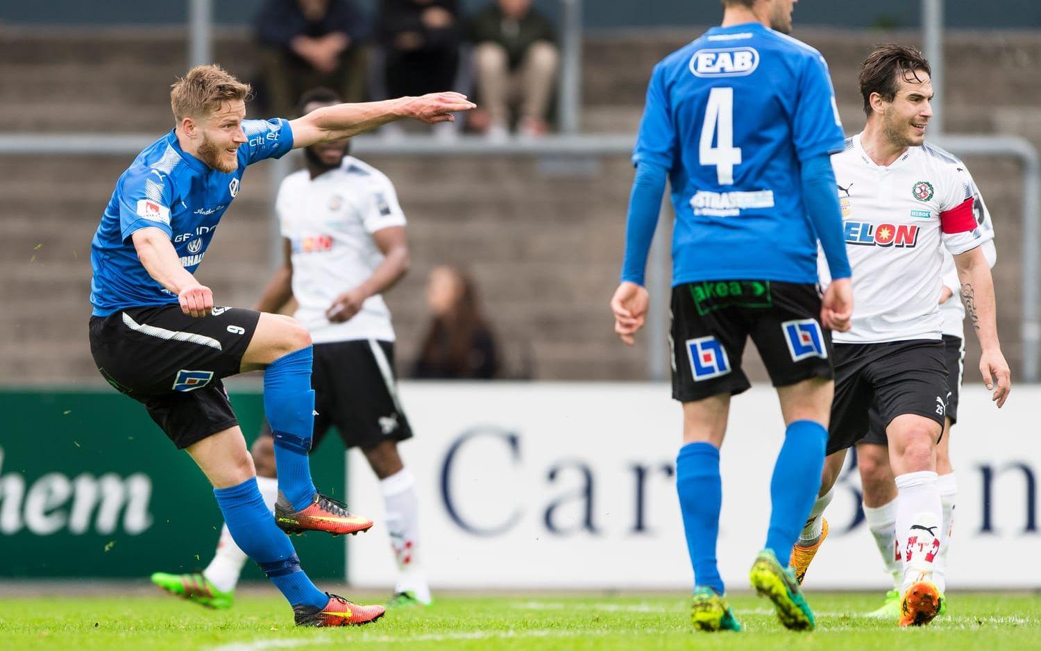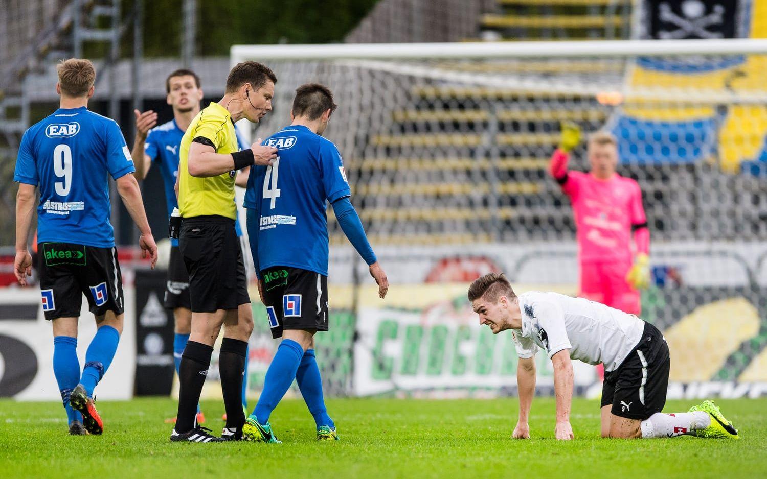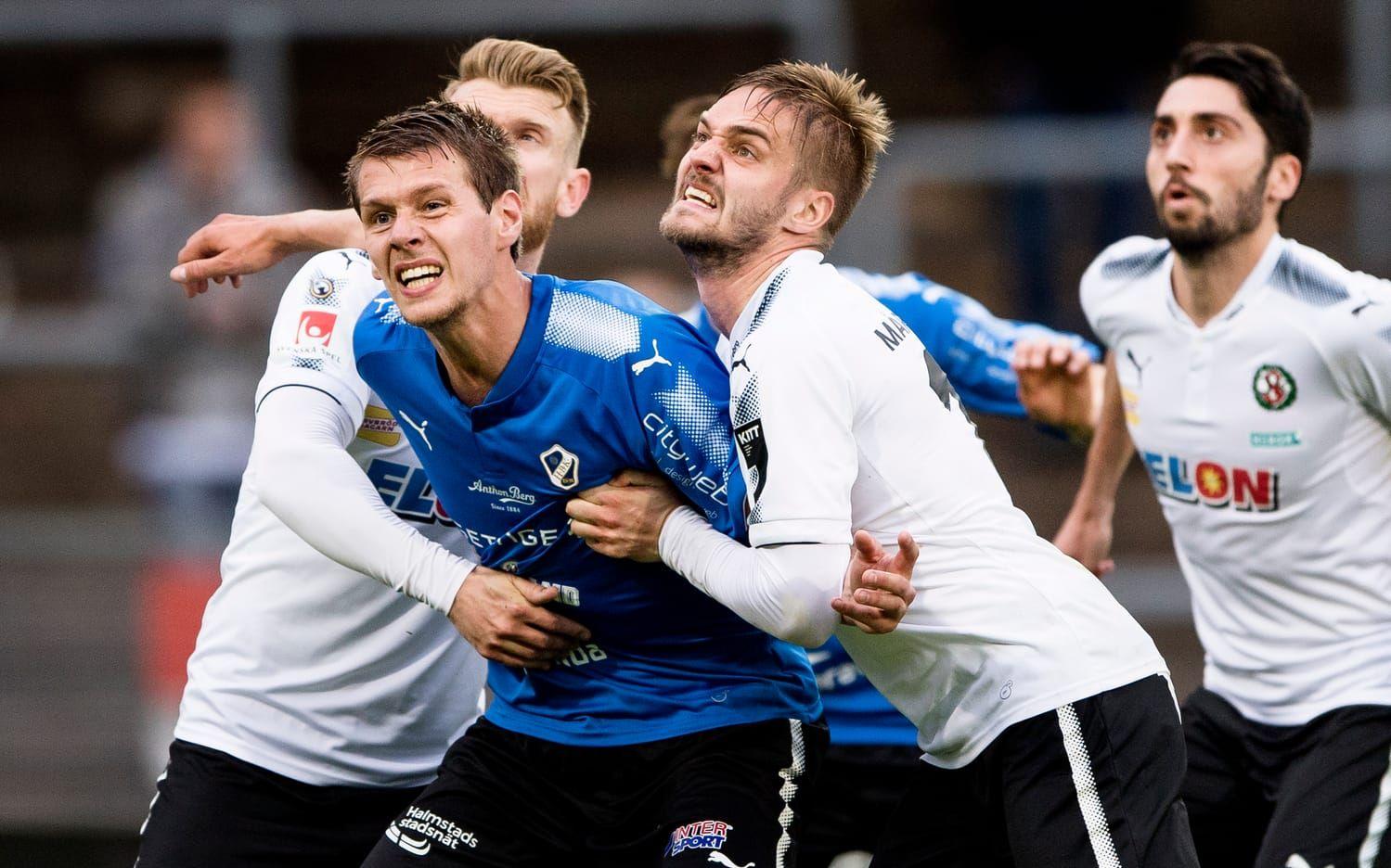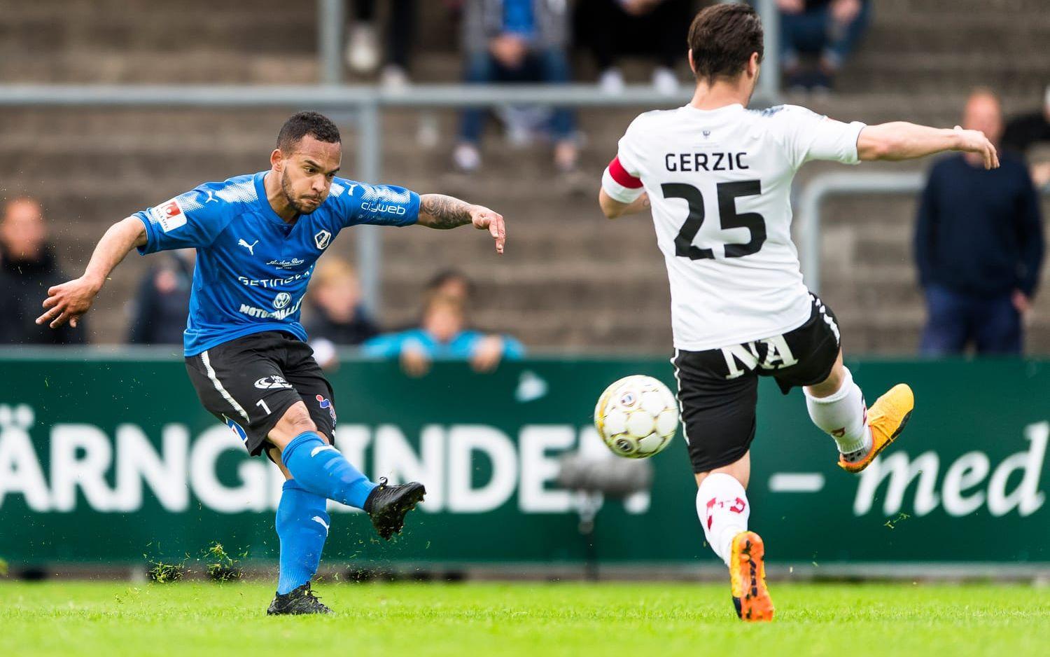 – Jag chansar på att han ska styra den mer åt höger, men den kommer mer rakt ut och sedan försöker jag styra in den när han rensar. Men tyvärr rensar han inte på mig och in, säger HBK-anfallaren.
