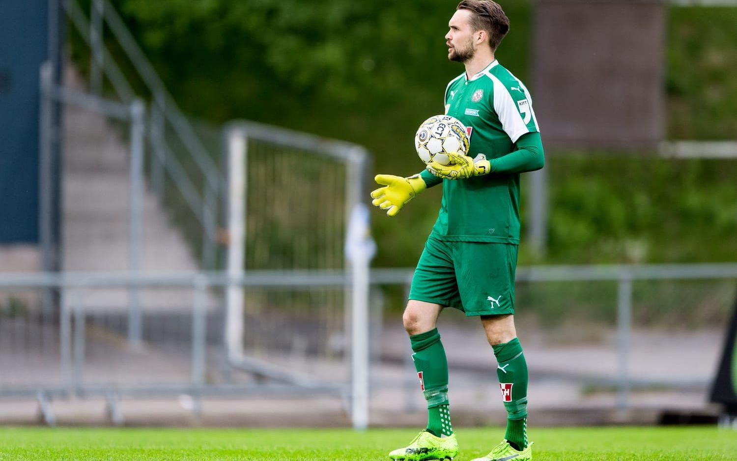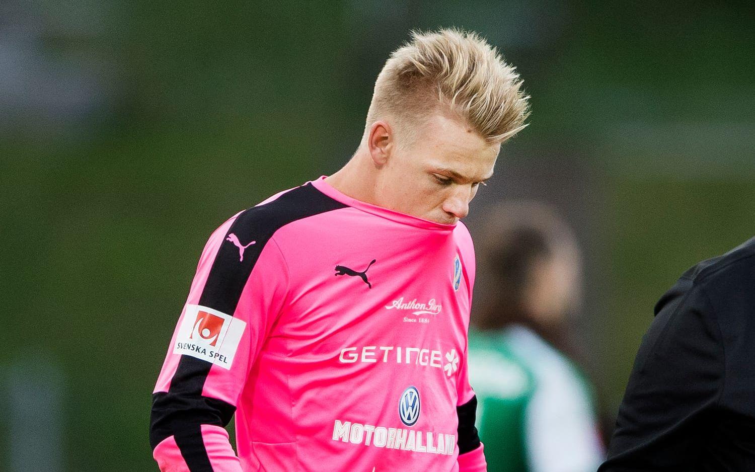 – Där ser jag bollen så pass sent, säger HBK-keepern, som lyckades styra kulan över ribban.